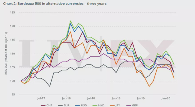 此外,波爾多500指數(shù)在過去12個(gè)月降低了3.6%,該指數(shù)追蹤二級市場上交易量最大的50款波爾多葡萄酒過去10年的價(jià)格走勢。過去一年,波爾多500指數(shù)使用英鎊的交易下跌3.6%,歐元下跌3.8%,美元下跌6.7%,日元下跌9.5%。
