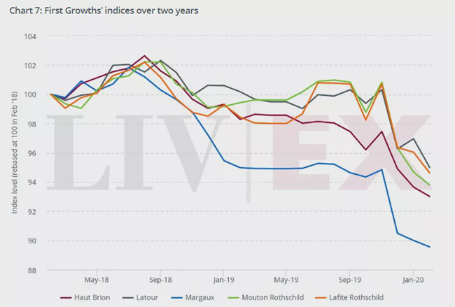 其次,中國市場對于法國酒的需求也有所降低。這導(dǎo)致波爾多葡萄酒加劇依賴英國市場,英國買家依舊是波爾多期酒周最大的群體。但隨著2020年以來新冠肺炎疫情的爆發(fā),市場被攪亂,英鎊暴跌。在油價(jià)暴跌的背景下,股票價(jià)值大幅下跌,只會(huì)加劇投資者的風(fēng)險(xiǎn)厭惡情緒。